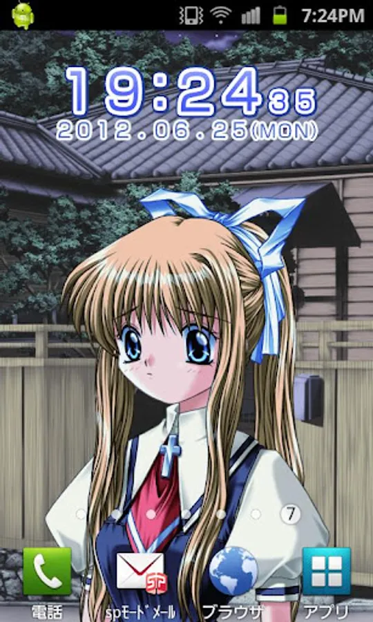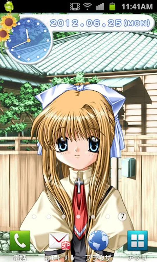 The background changes according to the time of day, and the expression of Misuzu changes depending on the battery level.