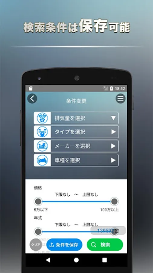 1: Search for motorcycles from manufacturers Many motorcycles from domestic manufacturers such as Honda, Yamaha, Kawasaki and Suzuki are also available.