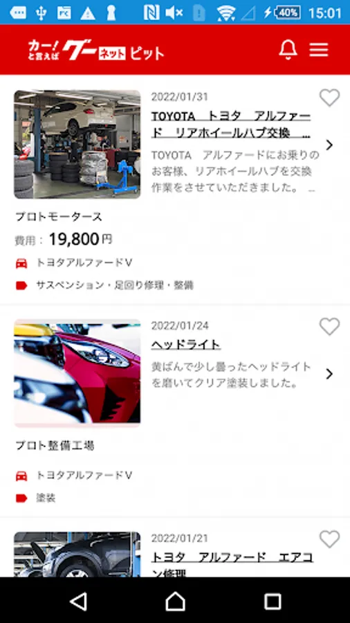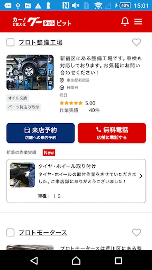 In the details of each maintenance shop, you can see "maintenance work results" and "reviews", and you can find the perfect maintenance shop with confidence!