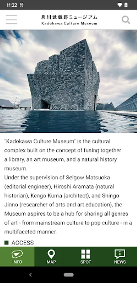 Under the supervision of Seigow Matsuoka (editorial engineer), Hiroshi Aramata (natural historian), Kengo Kuma (architect), and Shingo Jinno (researcher of arts and art education), the Museum aspires to be a hub for sharing all genres of art – from mainstream culture to pop culture – in a multifaceted manner.