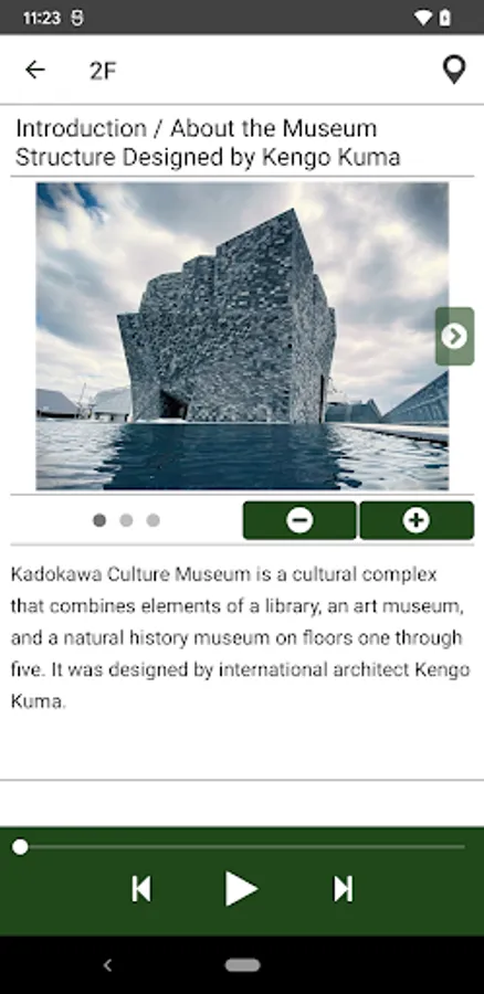 If you use it at the museum, audio that corresponds to the area you are viewing will automatically play.