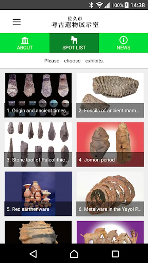 In Saku city archeological remains exhibition room, about 170 items such as pottery and stoneware from the glacier era to the Heian era are exhibited.