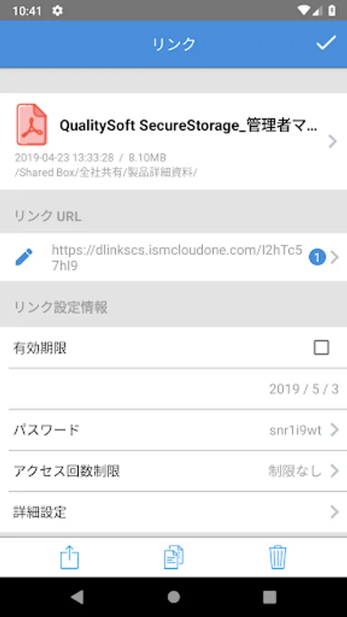 Since detailed security settings such as "password", "download count", "deadline" etc. can be made at link creation, file transfer more secure can be done.