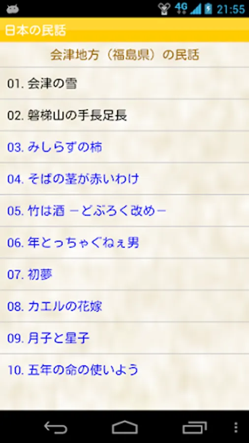 In this application, the folklore that had you provided from our Aizu in Fukushima Prefecture,