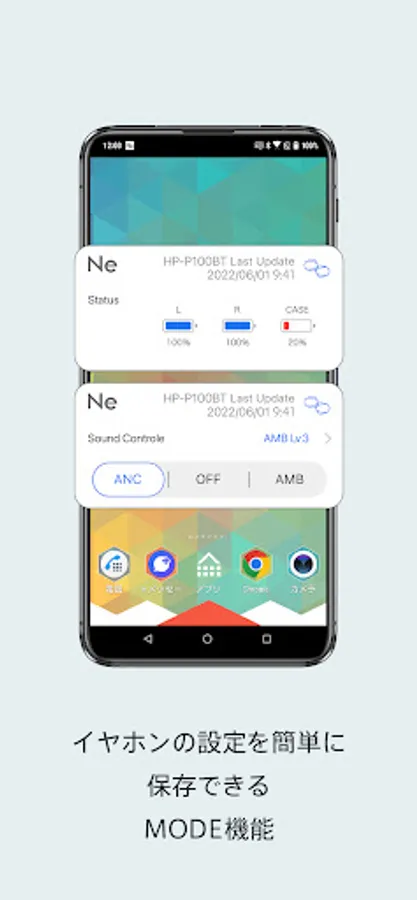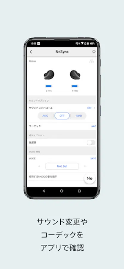 With the NeSYNC app, you can conveniently use compatible fully wireless earphones. In addition to checking the status of the remaining battery level, you can control the switching of sound modes such as noise canceling (ANC) and ambient (AMB) according to the environment and scene, and you can set the EQ according to your favorite music. Become. You can also save and recall the status of your favorite earphones all at once.