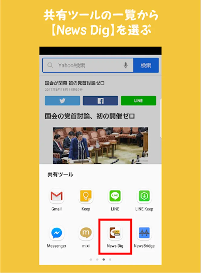 When you press the [News Dig] from the shared button of news articles was worrisome go to the Google search screen.