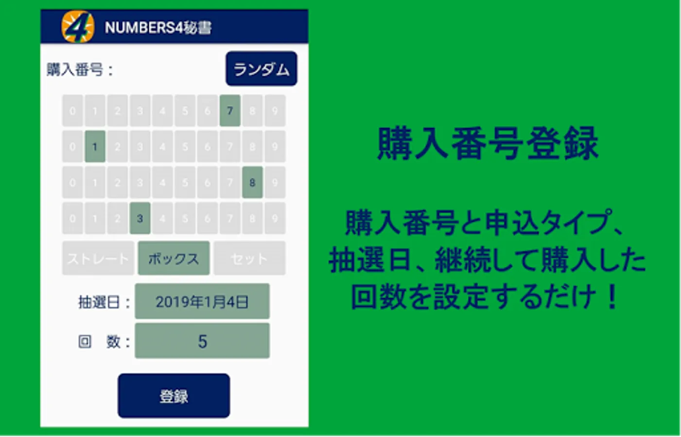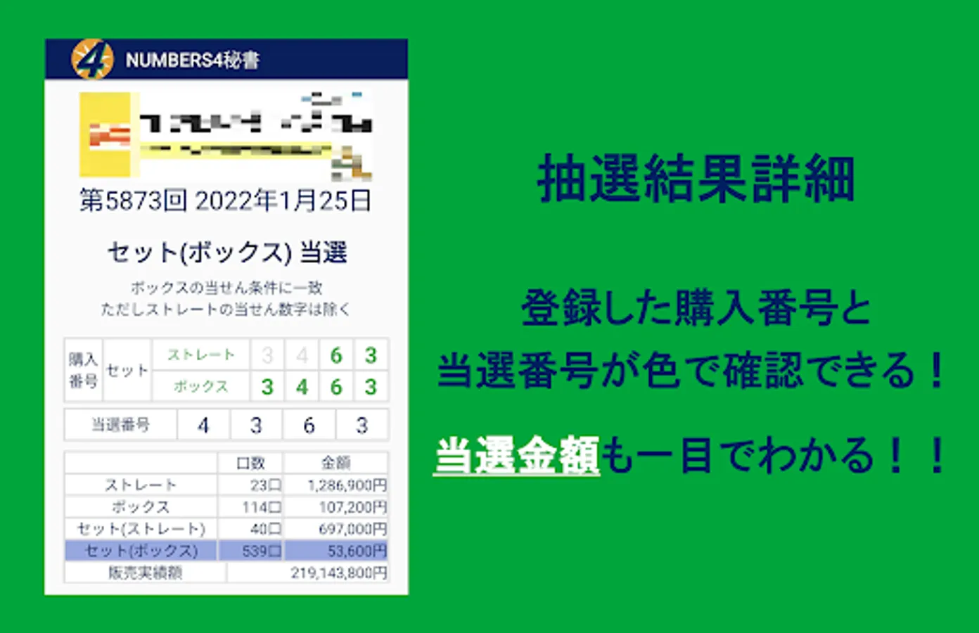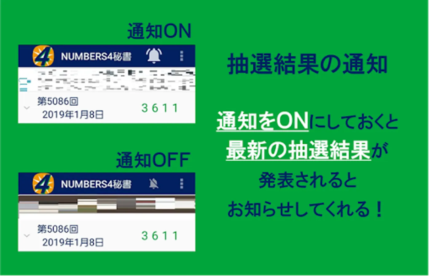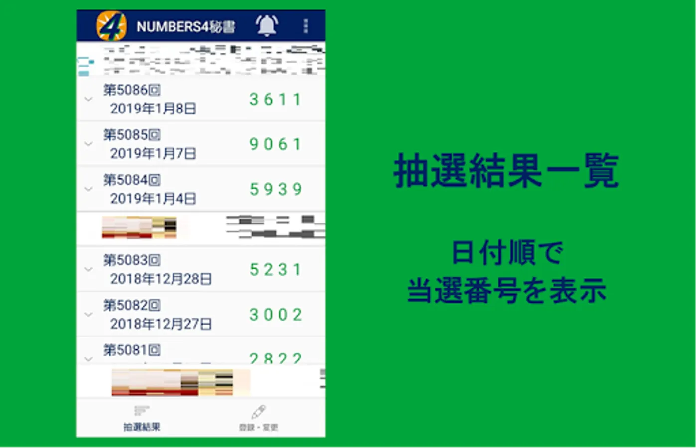 NUMBERS4 Secretary is an application that notifies you of the lottery results as soon as possible and automatically checks them.