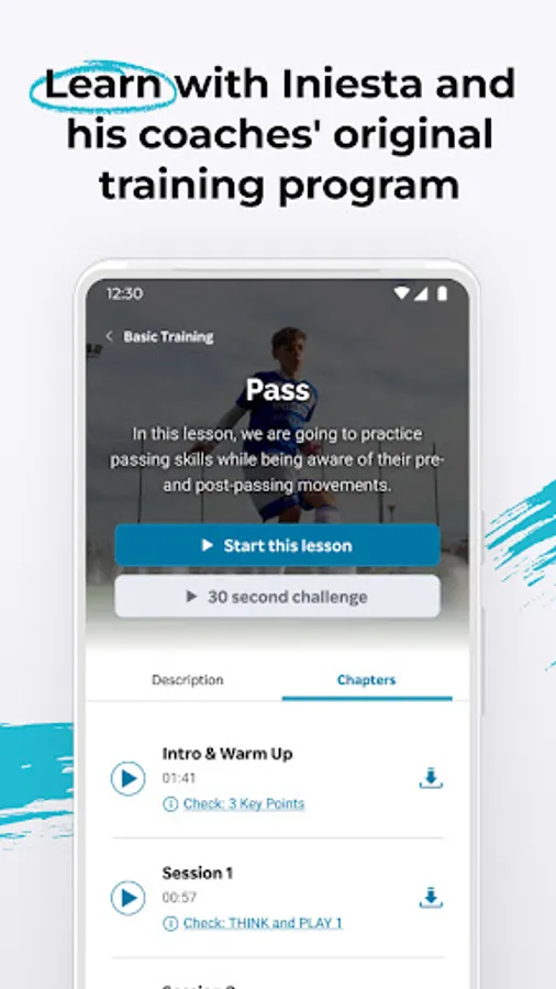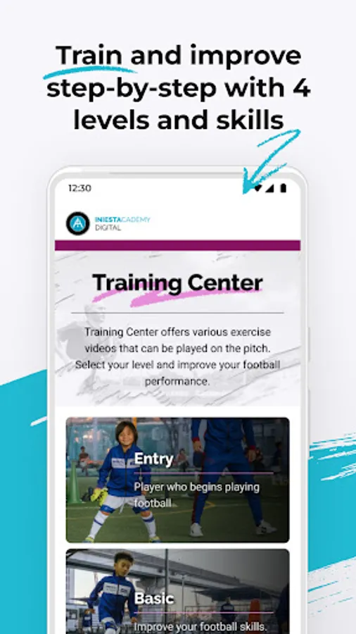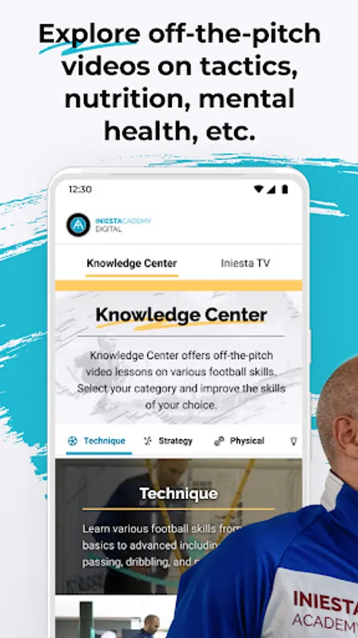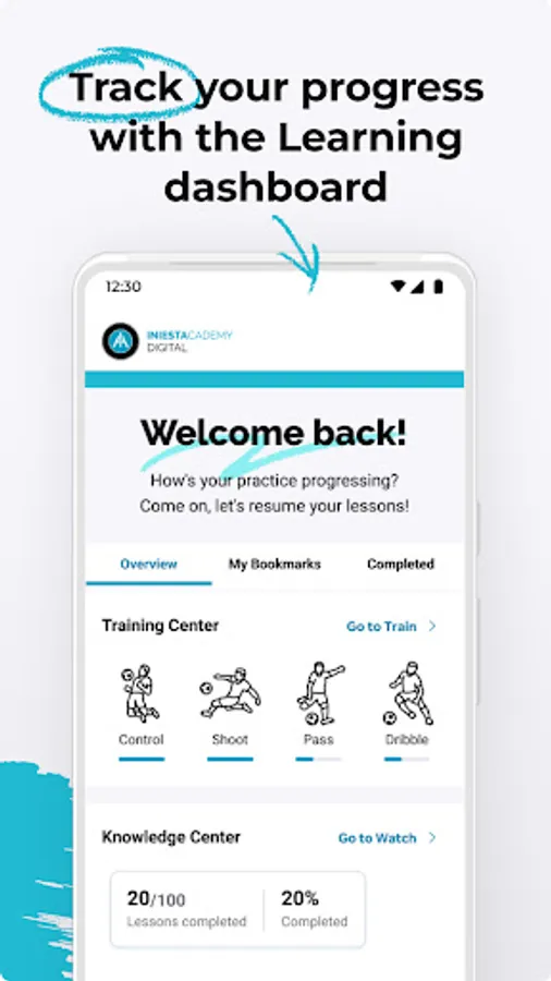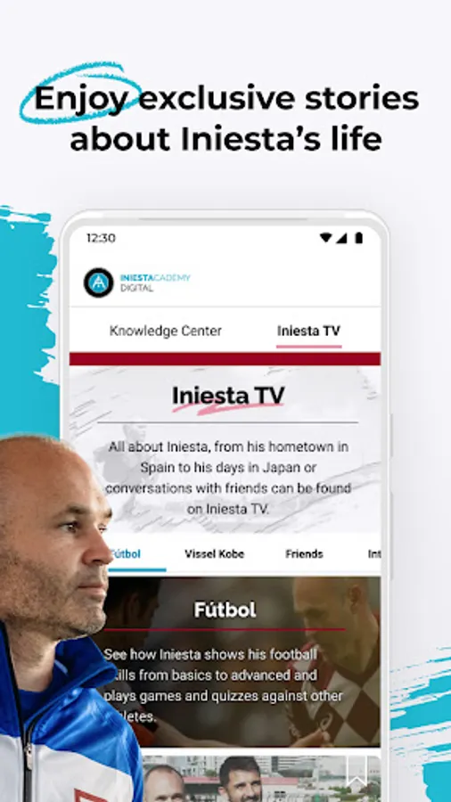 The Iniesta Academy Digital app offers a variety of football lessons taught by the world-class football player, Andrés Iniesta, and his coaches catered to your learning cadence.