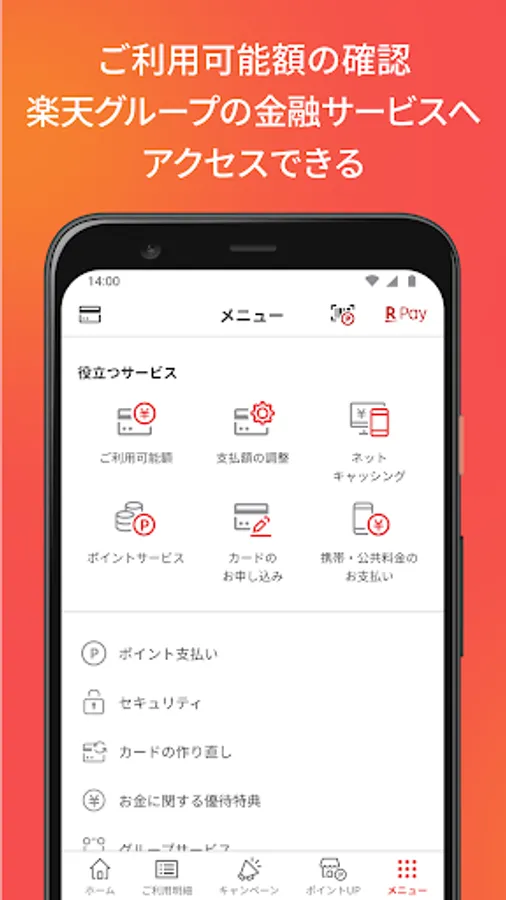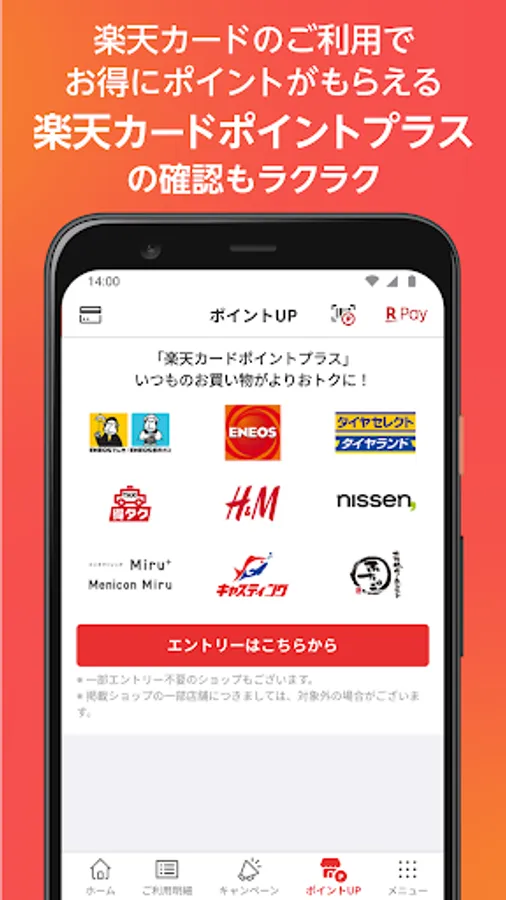 ・This app can be used by anyone who is a member of Rakuten Card and who is registered with Rakuten e-NAVI, an online service exclusively for Rakuten Card members.