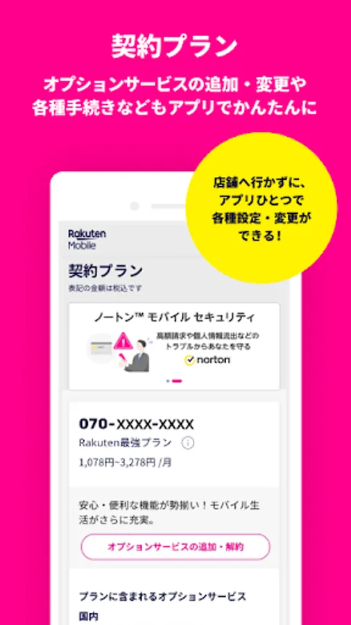 Optional services can be added or changed. In addition, procedures such as SIM replacement in case of theft or loss can be performed from the app.