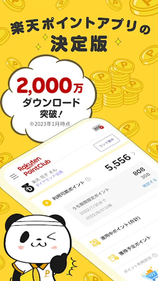 The Rakuten PointClub app is an app that allows you to manage Rakuten points. You can quickly check your current "Available Points" and "Limited Time Points". Information about campaigns that allow you to earn points smartly and products you have viewed on Rakuten Ichiba are displayed, making shopping even more fun!