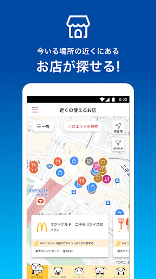 The Rakuten Point Card app can be used at Rakuten Point Card member stores that support the app.