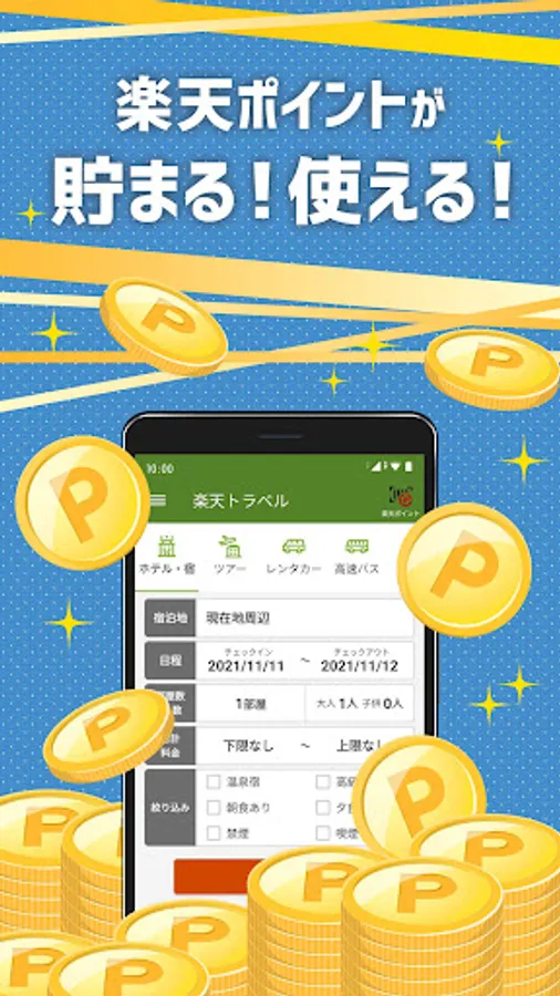 This is an official Android application from Rakuten Travel Inc., the largest hotel booking site in Japan.