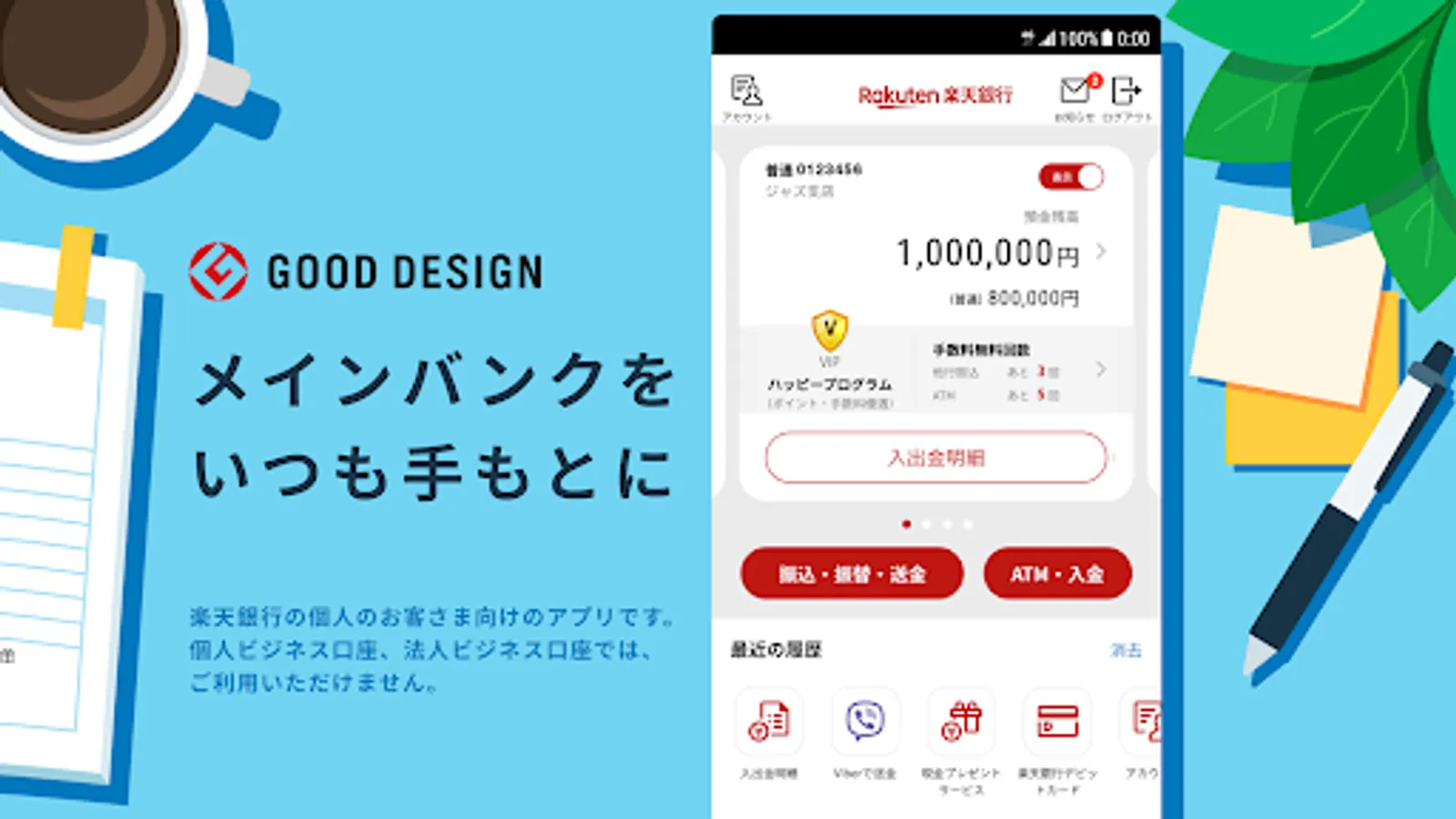 * This application is a smartphone application for personal customers of Rakuten Bank.