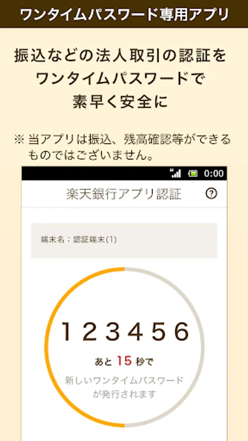 ※ This application is not the display of "one-time password" to be used for authentication of transactions that are subject of the main function. Please go in the PC-friendly site for your procedure of trading.