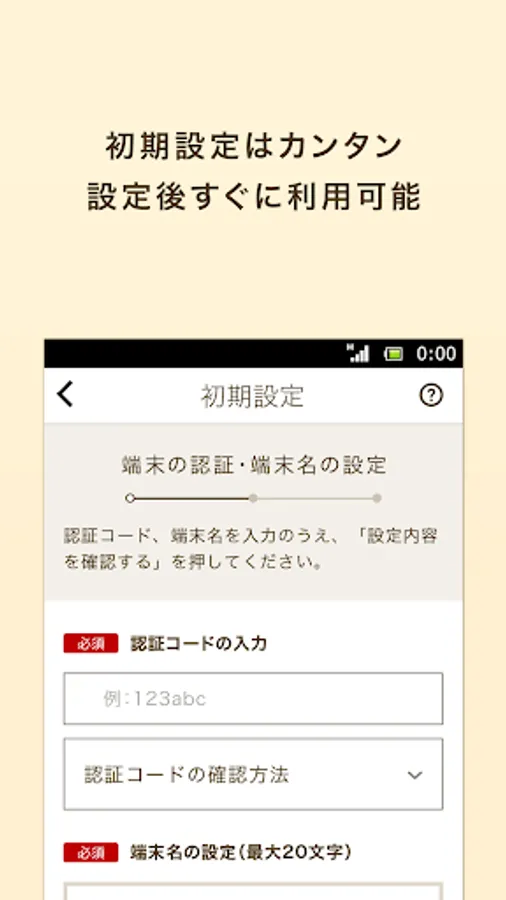 From the side of security personnel to rely on those who are actually using the app authentication code required for the initial setting, and issued on the PC for the site.
