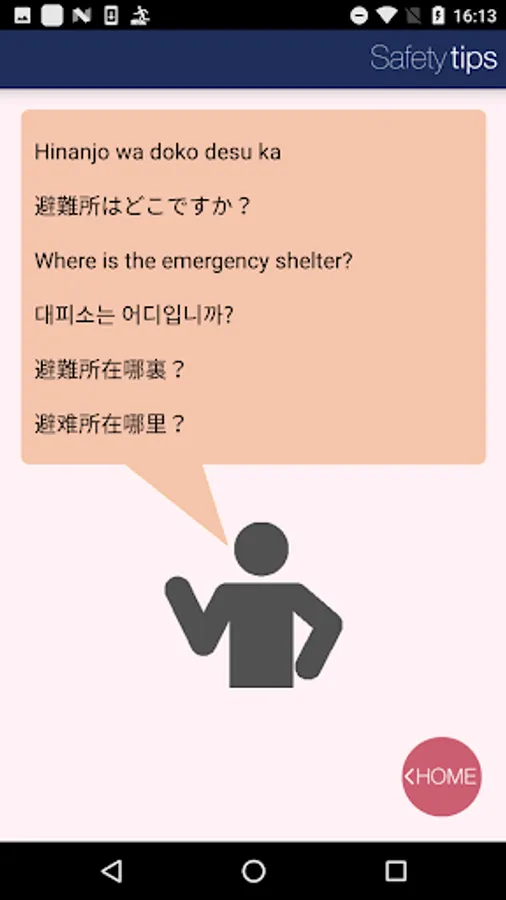 The Application provides various functions useful for foreign tourists in Japan. The application is available in five languages: English, simplified and traditional Chinese, Korean, and Japanese.