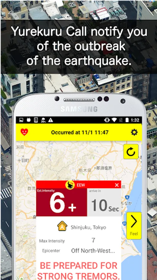 Utilizing the Earthquake Early Warning from the Japan Meteorological Agency, this application provide you with the earthquake warning.