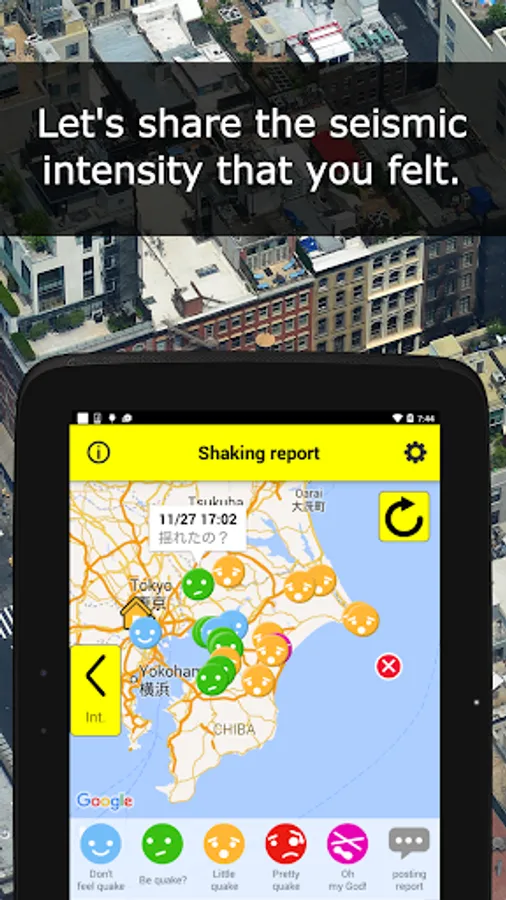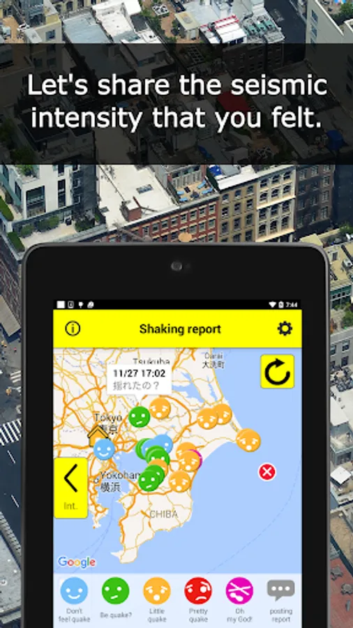 ■ "Shaking report" Let's share the seismic intensity that you felt.
