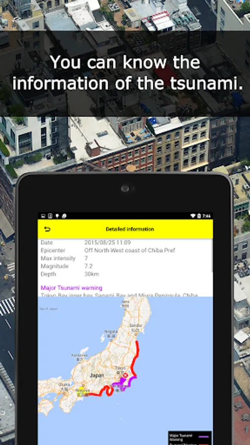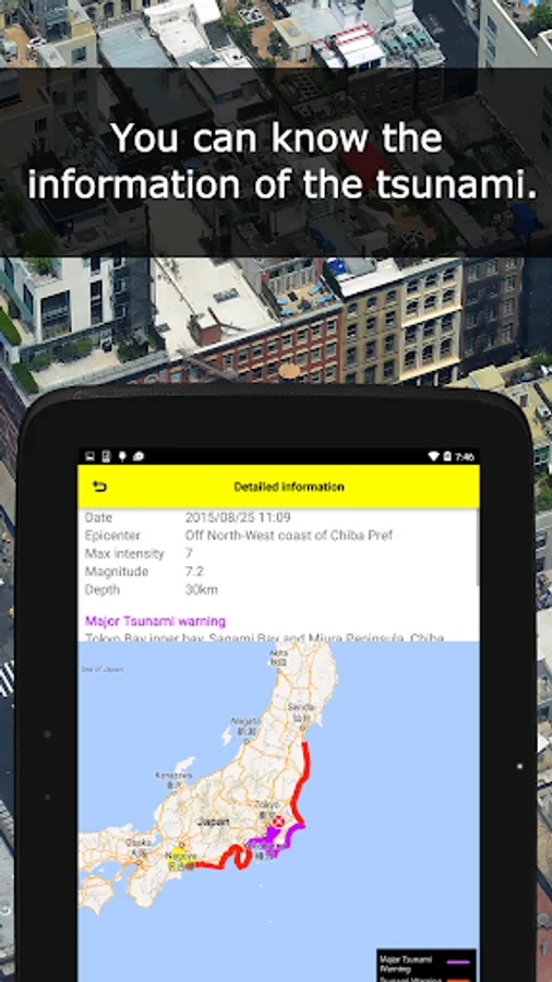 And when a tsunami warning is announced, you can see the information of the tsunami.