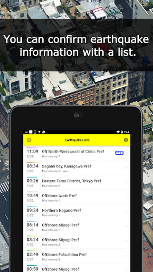 You can confirm earthquake information with a list.