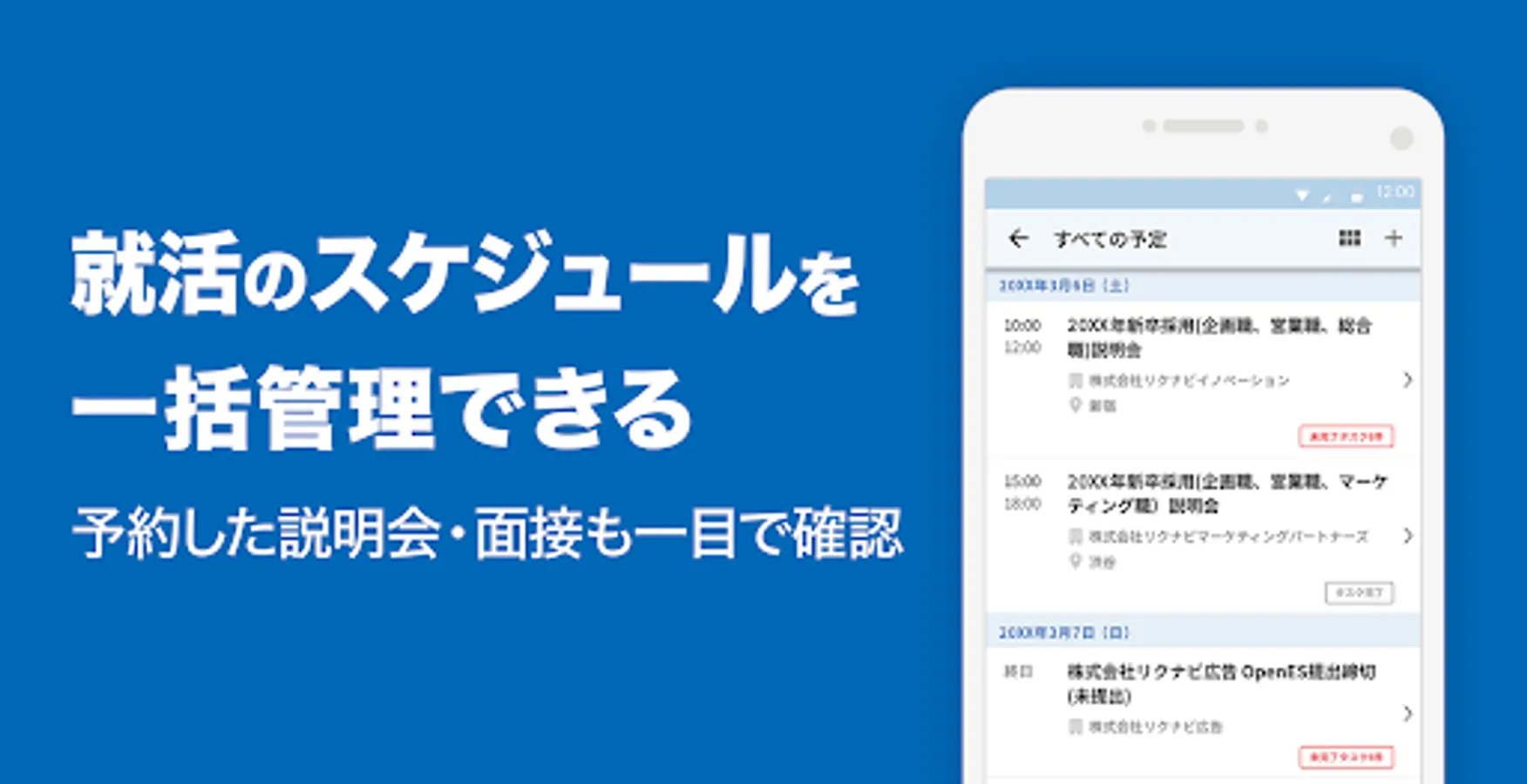 You can check the schedule of briefing sessions and events reserved from Rikunabi from the app. You can also display a map to the venue, so you don't have to rush to find out just before.