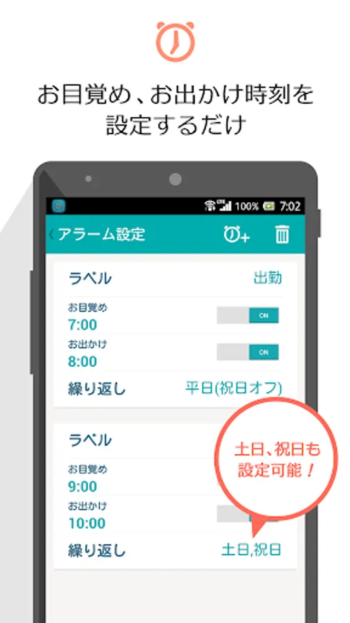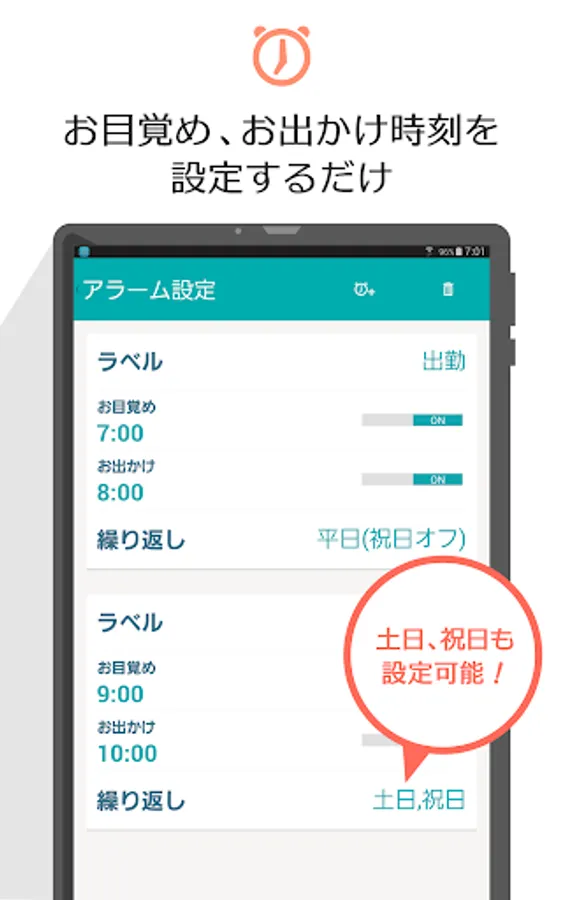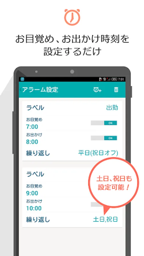"Asokei" is an alarm app that not only wakes you up in the morning but also reminds you when it's time to leave the house.