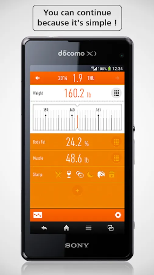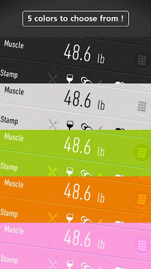 You can change the color to suit your tastes or your mood for that day, from five different colors: black, white, orange, green and pink. You can tackle your weight recording any time with a fresh attitude.