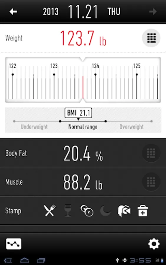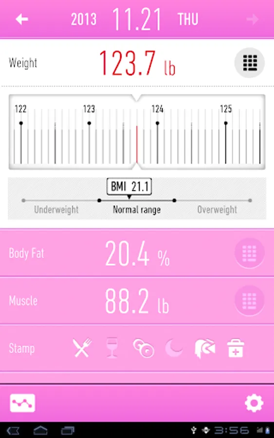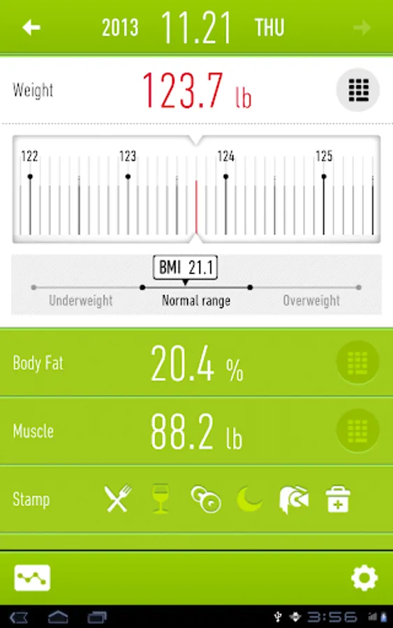 With RecStyle you can add items indispensible for dieting, such as 'weight' and 'body fat', and you can also manage your 'muscle mass', useful for muscle training.