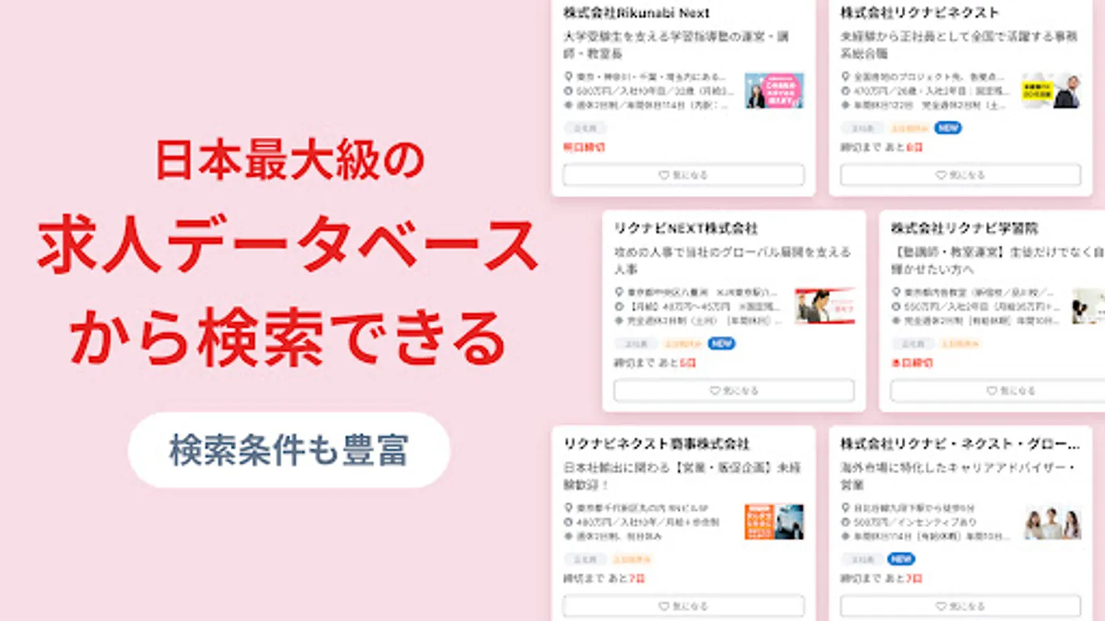 (*1) Rikunavi NEXT is provided and operated by Recruit Co., Ltd. Recruit Group also provides Recruit Agent, a career change support service.