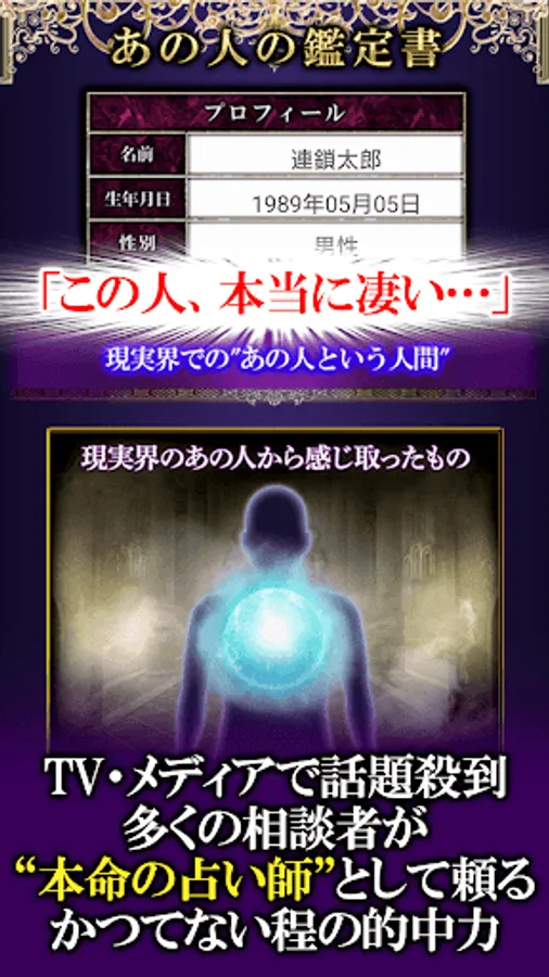 ※2 こちらは鑑定の一例です。実際の鑑定結果と異なる場合がありますので、予めご了承下さい。