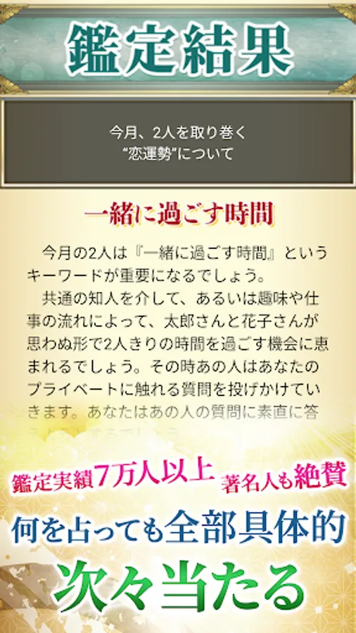 ㈰ Let's understand the love luck and the current situation of the two people concretely by "new surname appraisal" which is the product of your surname and that person's surname and appraisal month.