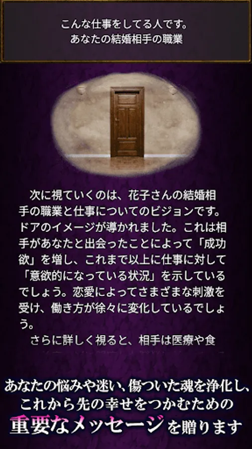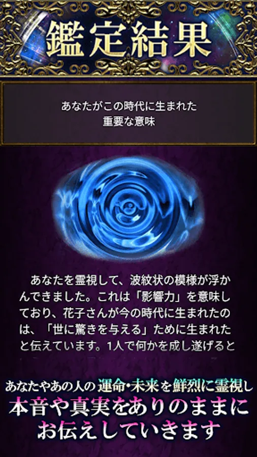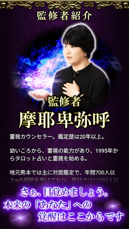 ◆ Your alter ego spiritual vision: We will use the powerful spiritual power of Maya Yasushi to read what you want to know now, the answers to your worries and doubts.