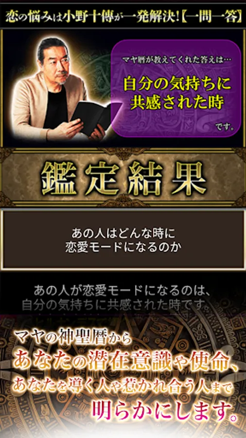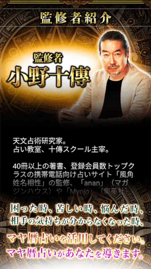 The "ultimate" Mayan calendar fortune-telling that "fortune-telling expert" Toden Ono presents to you. Mayan calendar fortune-telling spun by the wisdom of 4000 years ago. The ancient Mayan civilization was developed by the Mayan calendar, which mastered advanced mathematics and astronomy.