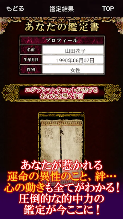 ※2 こちらは鑑定の一例です。実際の鑑定結果と異なる場合がありますので、予めご了承下さい。