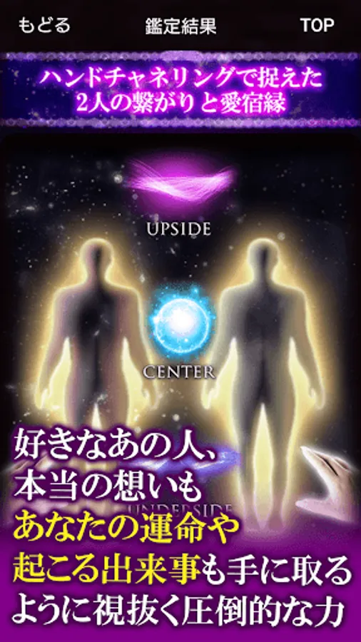 あなたに手をかざし、どんな運命かを探ることで、あなたの現実に迫っていきます。性格面、運命などに触れ、気持ちや本音……今まで見えなかったものが、