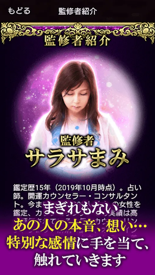 本鑑定は、全国の女性から圧倒的な支持を得る奇跡を招くスピリチュアリスト「サラサまみ」によるオリジナルスピリチュアル鑑定です。