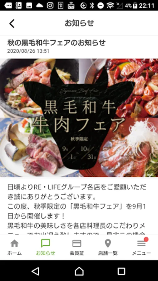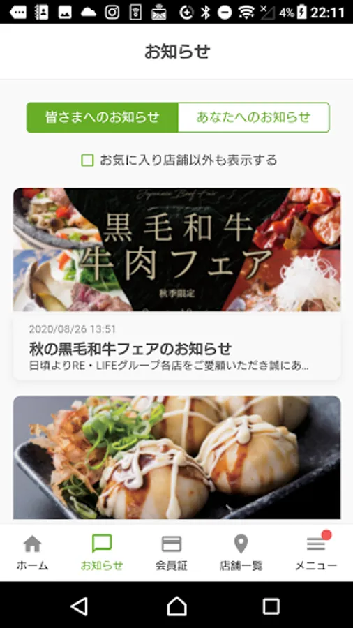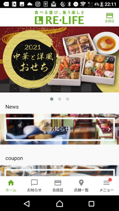 This is the original app of Relife Co., Ltd.! You can get great coupons and sale information that can be used at restaurants operated by Re Life Group. Please enjoy eating, drinking and shopping by accumulating points and stamps.