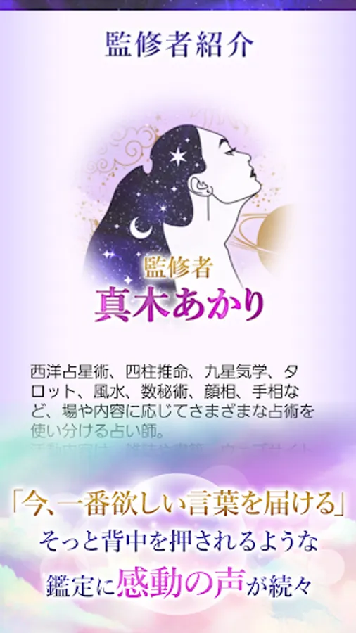 "Akari Maki" is active in many women's magazines. Her fortune-telling is finally at your fingertips.