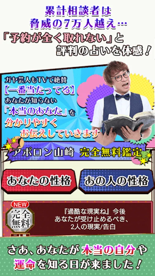 Hit the celebrity's marriage and hit the entertainer's job. "Apollon Yamazaki" is a fortune-teller who is trusted by 70,000 people.