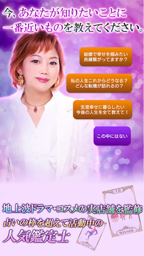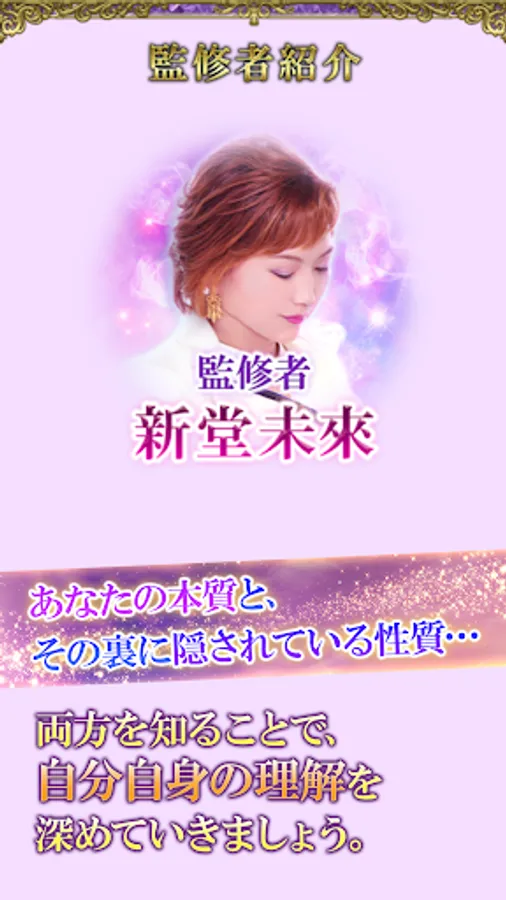 Produced by a famous cosmetics store. He swept 28 Japanese women's magazines and made a great hit with a program that competes for hits on TV. The fortune-telling of "Shindo Mirai", which was jealous of other fortune-tellers, has finally become an app!