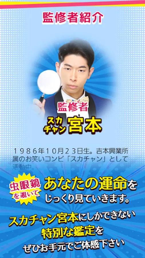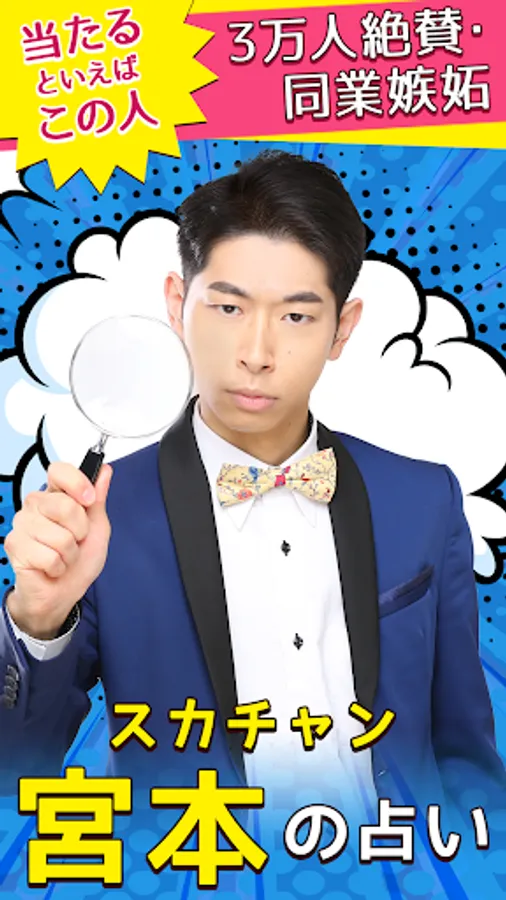 Ah ... it's a hit ...! Fortune-telling entertainer "Sukachan Miyamoto" who has gained popularity in numerous TV programs. Acclaimed by 30,000 people! Acclaimed when famous entertainers hit one after another on TV.