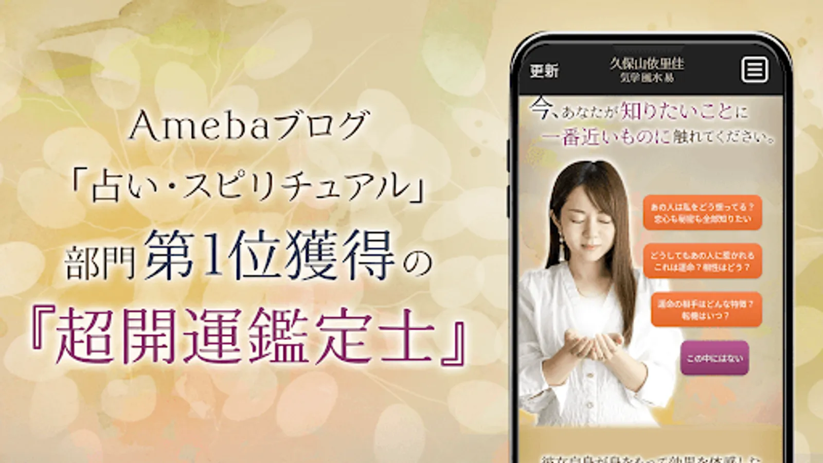"Erika Kuboyama", an appraiser who boasts of blog top achievements (*) on Ameba. "Kigaku feng shui" that connects "feelings" to fulfillment, and "Yi" that knows everything in this world. Promising a rise in luck with a super good luck appraisal verified by the person himself. It will give you certain results and achievements in your life and love.