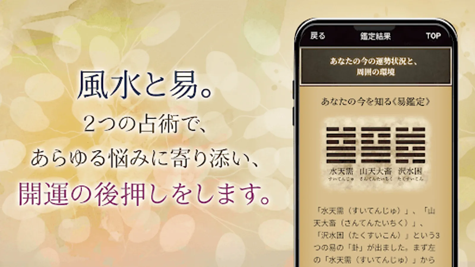 This appraisal is performed by combining two divinations, [feng shui] and [easy]. Both are historical divination that originated in ancient China. In [Feng Shui], based on the basis of "Kyusei Kigaku", the "Favorite board", "Moonmei board", and "Tilted board" are issued from the person's date of birth. By combining them, you can read and understand your own "luck" in detail. In [I], based on the Confucian scripture "I Ching", all the elements that occur in this world are divided into two, "yin and yang", and further divided into eight elements called "Hakka". . When fortune-telling, you can use the element of "rokujushike/rokujuushika", which is a combination of eight trigrams and eight trigrams, to clarify the fortune and judgment of things. Let's turn your luck into the best with the [Feng Shui] and [Easy] appraisals that have been proven over a long history.