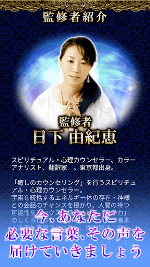 スピリチュアル・心理カウンセラー、カラーアナリスト、翻訳家。東京都出身。
