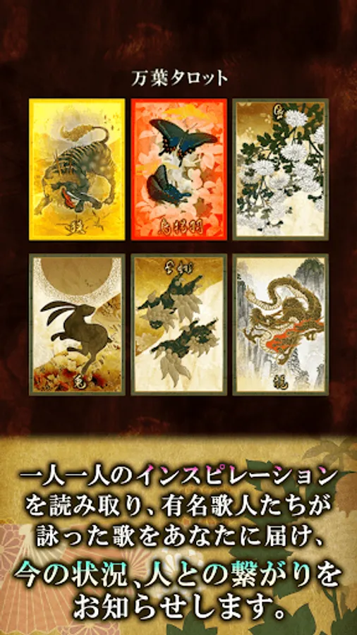 The Manyo Tarot is a card that delivers songs written by famous poets to appraisers living in the present age and informs them of the current situation and connections with people. Each waka is opened to know your "now" and save your "future".