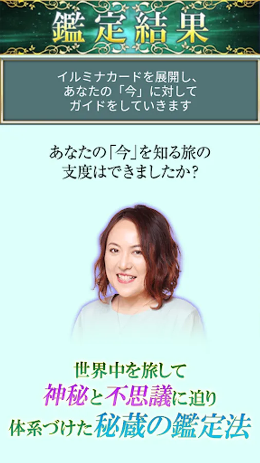 Currently, under the theme of "a way of life that is unique to that person," the original method "Illumina Fortune" not only predicts the future of the consultant himself, but also helps lead to a happy life. A fortune-teller with a 10-year history of fortune-telling and a track record of over 20,000 appraisals.