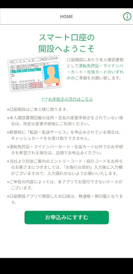 This app is an app that allows you to easily and speedily open an account for the Resona Group (Resona Bank, Saitama Resona Bank, Kansai Mirai Bank) by taking a picture of your identity verification document with your smartphone and sending it along with the necessary information.