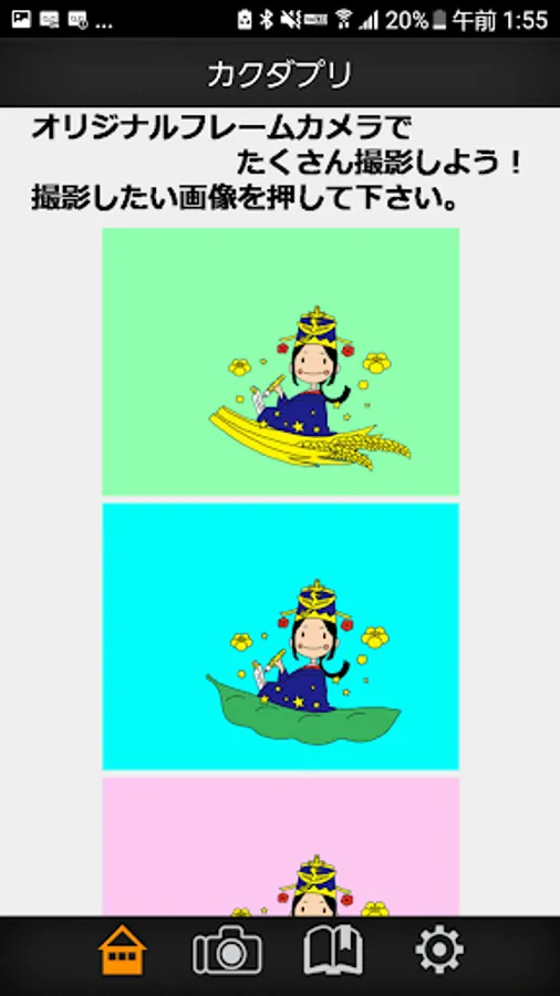 Go around Kadoda city and hold the app on the target poster and get stamp! Get rewards with 3 achievements and 9 achievements!