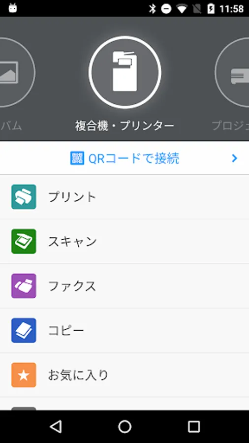 ・Bluetooth(*1)やQRコードを使って、複合機(*2)と接続できる。
